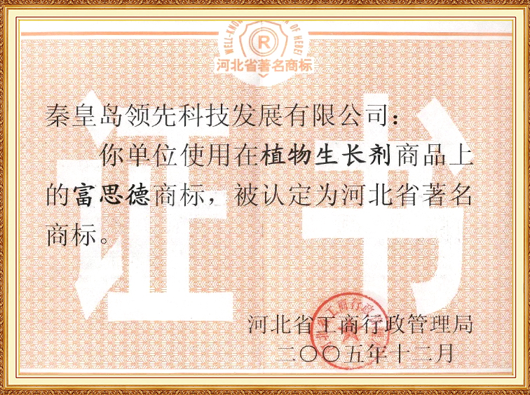 富思德牌微生物菌劑—河北省名牌產(chǎn)品證書(shū)