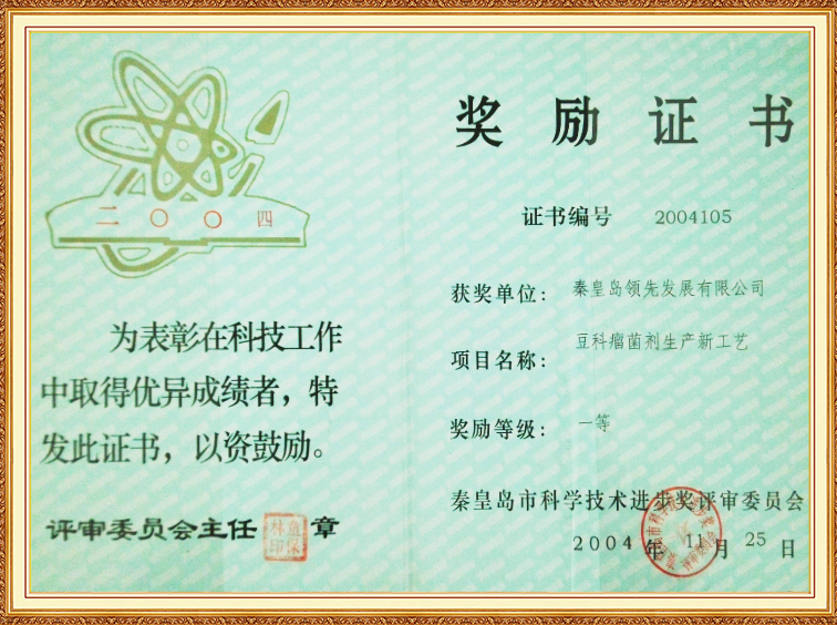 豆科瘤菌劑生產(chǎn)新工藝—秦皇島科學(xué)技術(shù)進(jìn)步一等獎