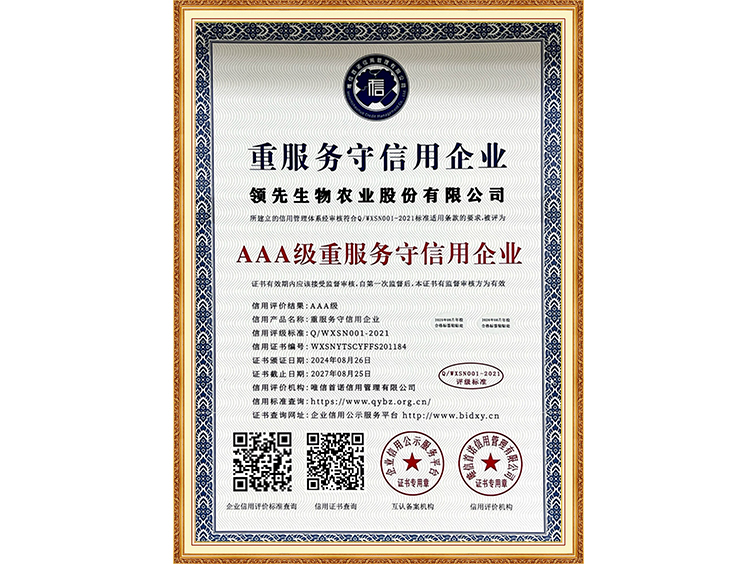 AAA級(jí)重服務(wù)守信用企業(yè)